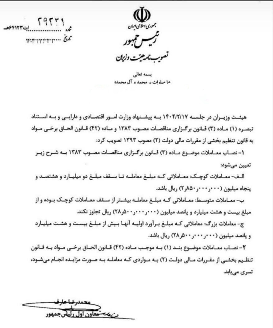 نقش حد نصاب معاملات در مقررات مالیاتی به همراه تصویب نامه هیئت وزیران