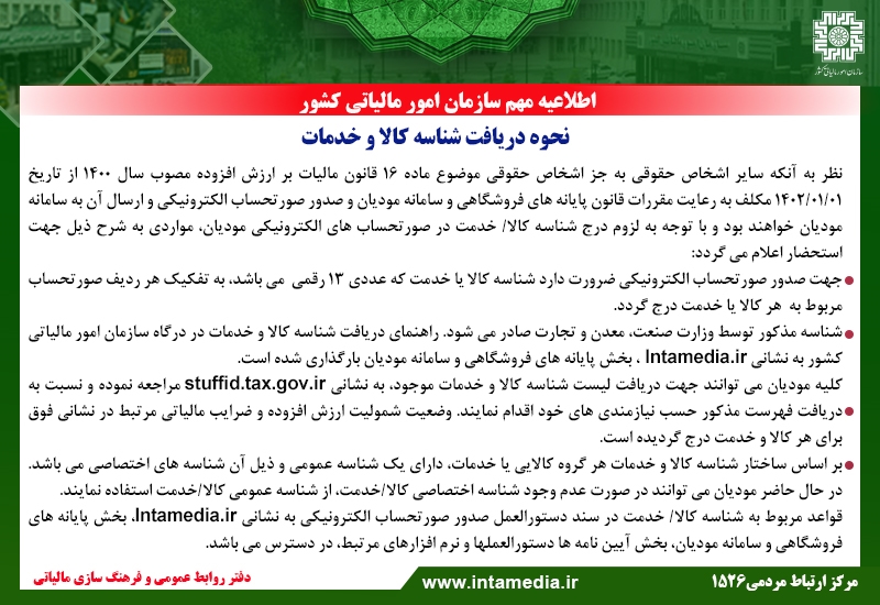 - اطلاعیه شماره 4 - نحوه دریافت شناسه کالا و خدمات