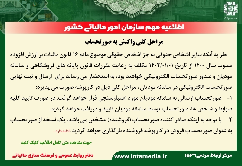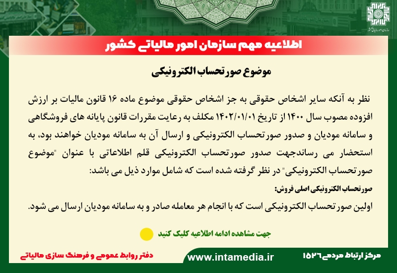 - اطلاعیه شماره 7 - موصوع صورتحساب الکترونیکی