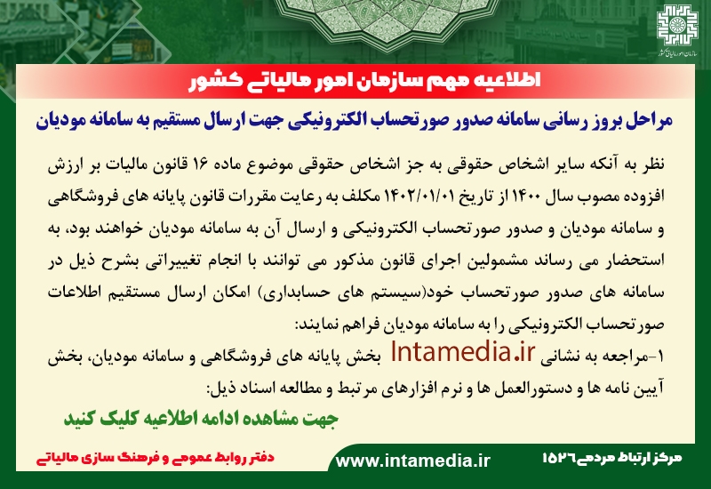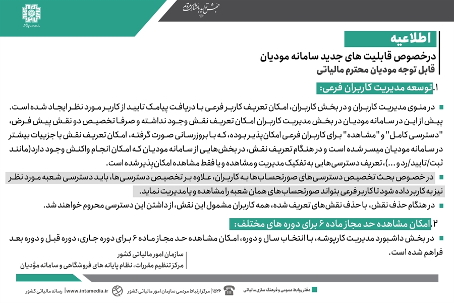 - اطلاعیه شماره 6 - قابلیت های جدید سامانه مودیان