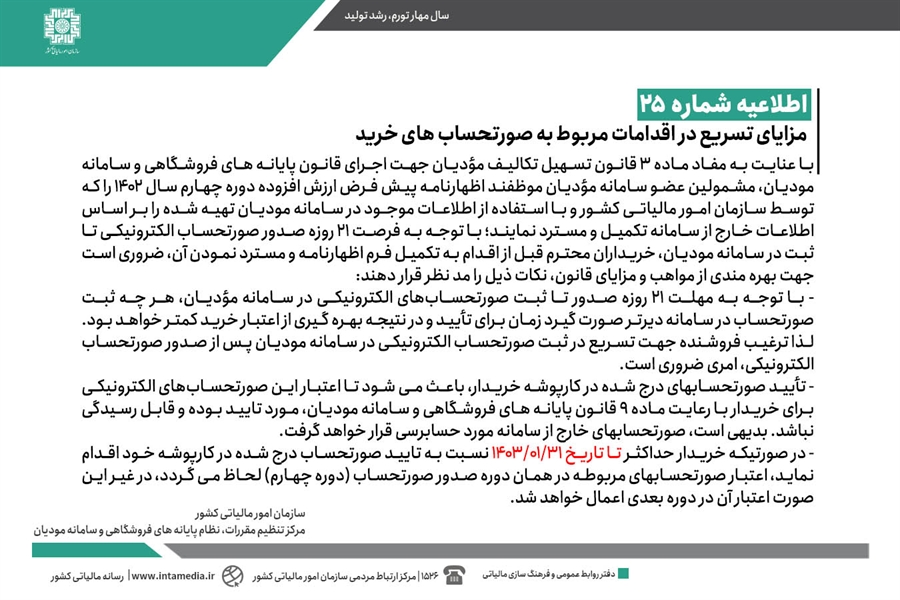 - اطلاعیه شماره 25 - مزایای تسریع در اقدامات مربوط به صورتحساب های خرید