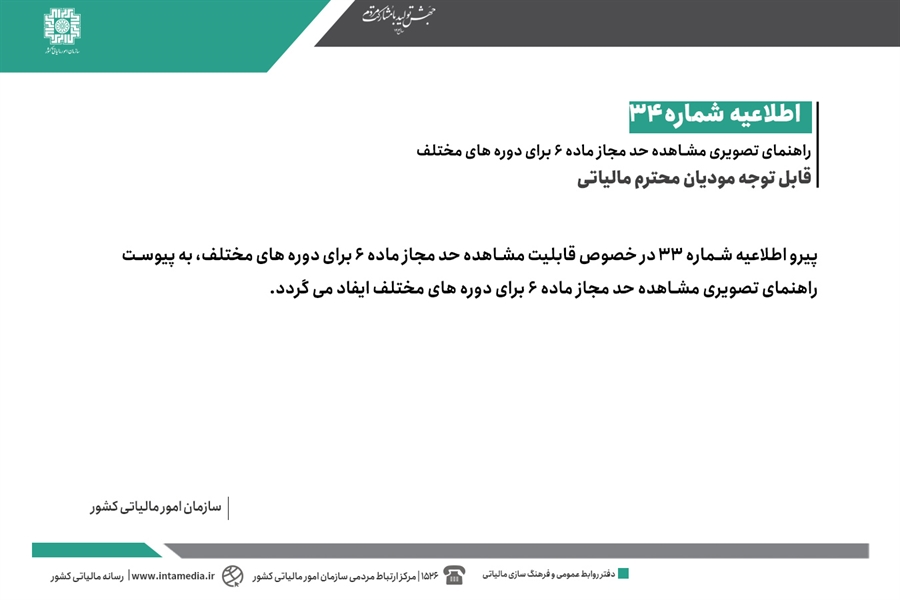 - اطلاعیه شماره 34 - راهنمای تصویری مشاهده حد مجاز ماده 6 برای دوره های مختلف