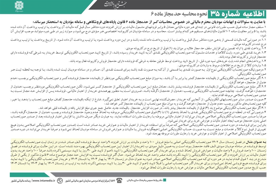 - اطلاعیه شماره 35 - نحوه محاسبه حد مجاز ماده 6