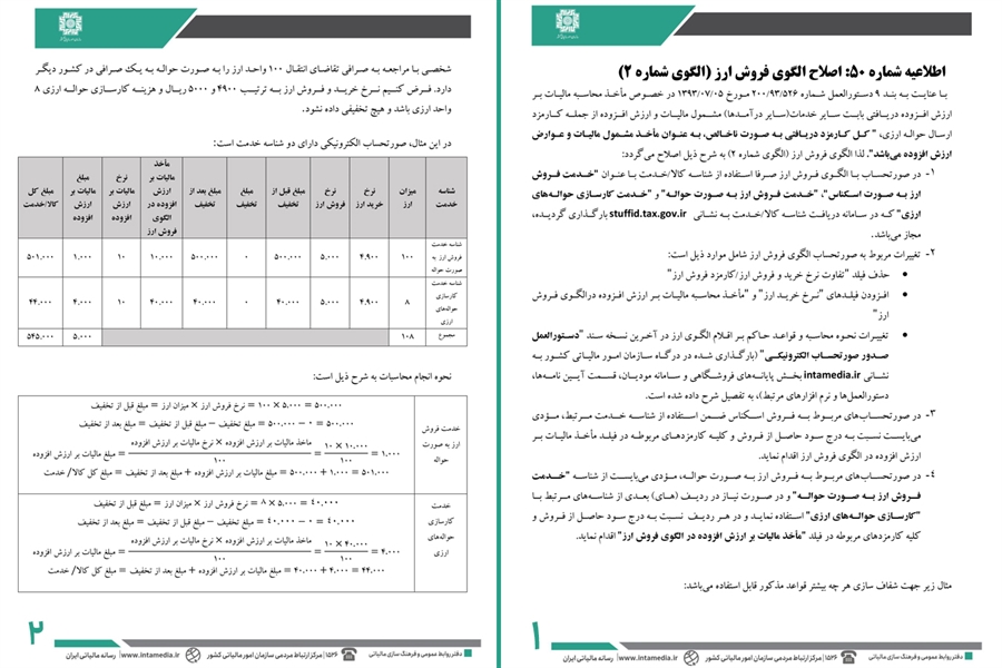- اطلاعیه شماره 50 - اصلاح فروش الگوی ارز