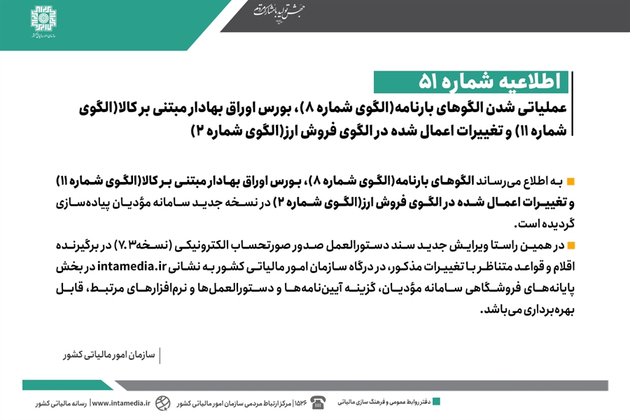 - اطلاعیه شماره 51 - عملیاتی شدن الگوهای بارنامه، بورس اوراق بهادار و تغییر اعمال شده در الگوی فروش